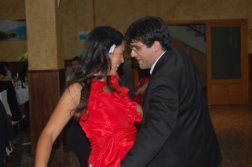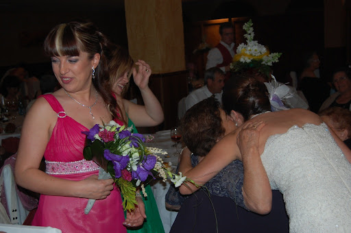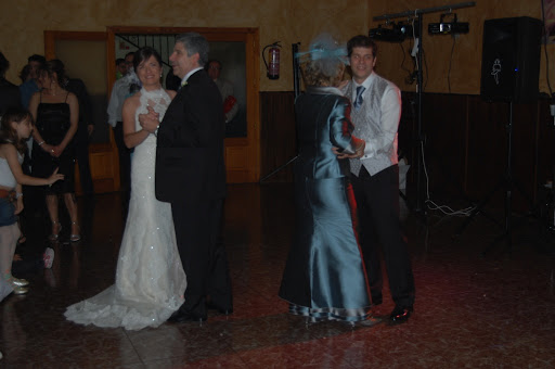 Mi Josico tuvo un detalle muy bonico: se arrodilló, me besó la mano y me ofreción la suya para ir a bailar. Bailamos un trozo nosotros, con vueltas y una caída hacia atrás de la novia con recogida del novio incluídas, sin ninguna rotura de cadera, y después tocaba bailar con los padrinos. Pero el pendejo del padrino no estaba por ahí. Ni tampoco mi madre. A la gente le dio por irse en ese momento y despedirse de ellos. Eso sí, ya les he echao el puraco. Mira que no ver el baile de su hija.... En fins, que le vamos a hacer. Menos mal que estaba mi suegro, que se ofreció a bailar conmigo (tampoco le dejé opción, jejej)